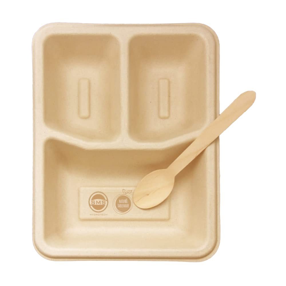 Product Description3-compartment square plate made from bagasse. Oil-resistant, microwave-safe, compostable.