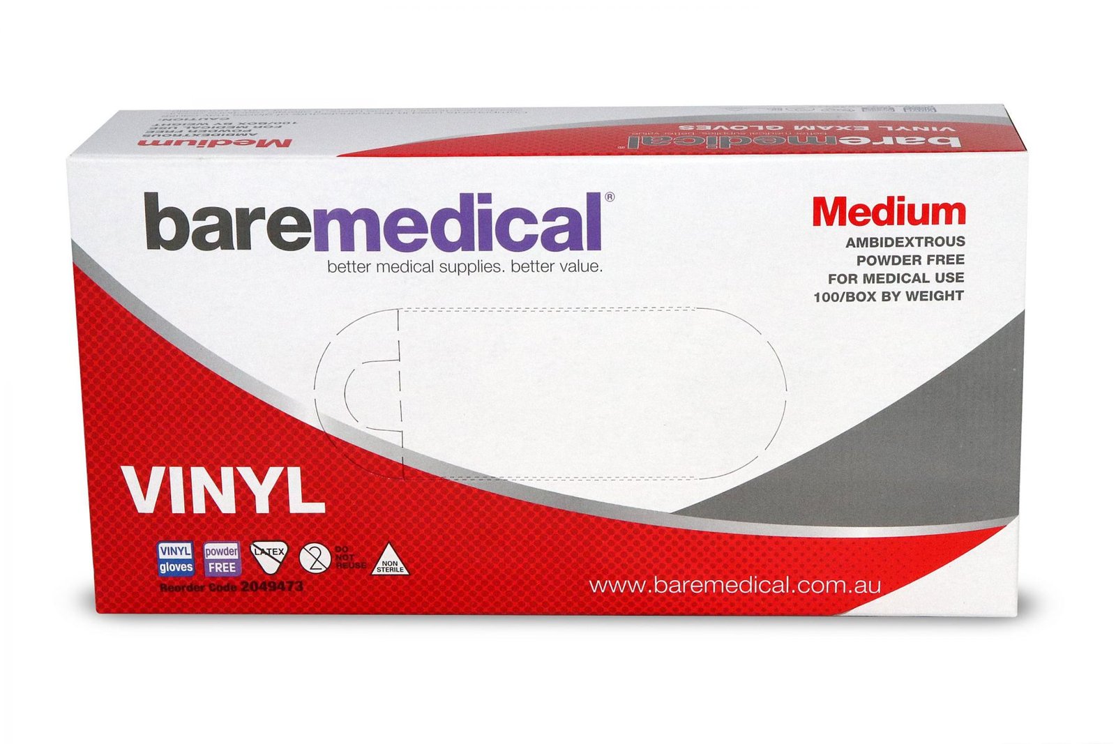 GLOVE EXAM VINYL NON-STERILE POWDER FREE STD CUFF CLEAR BAREMEDICAL