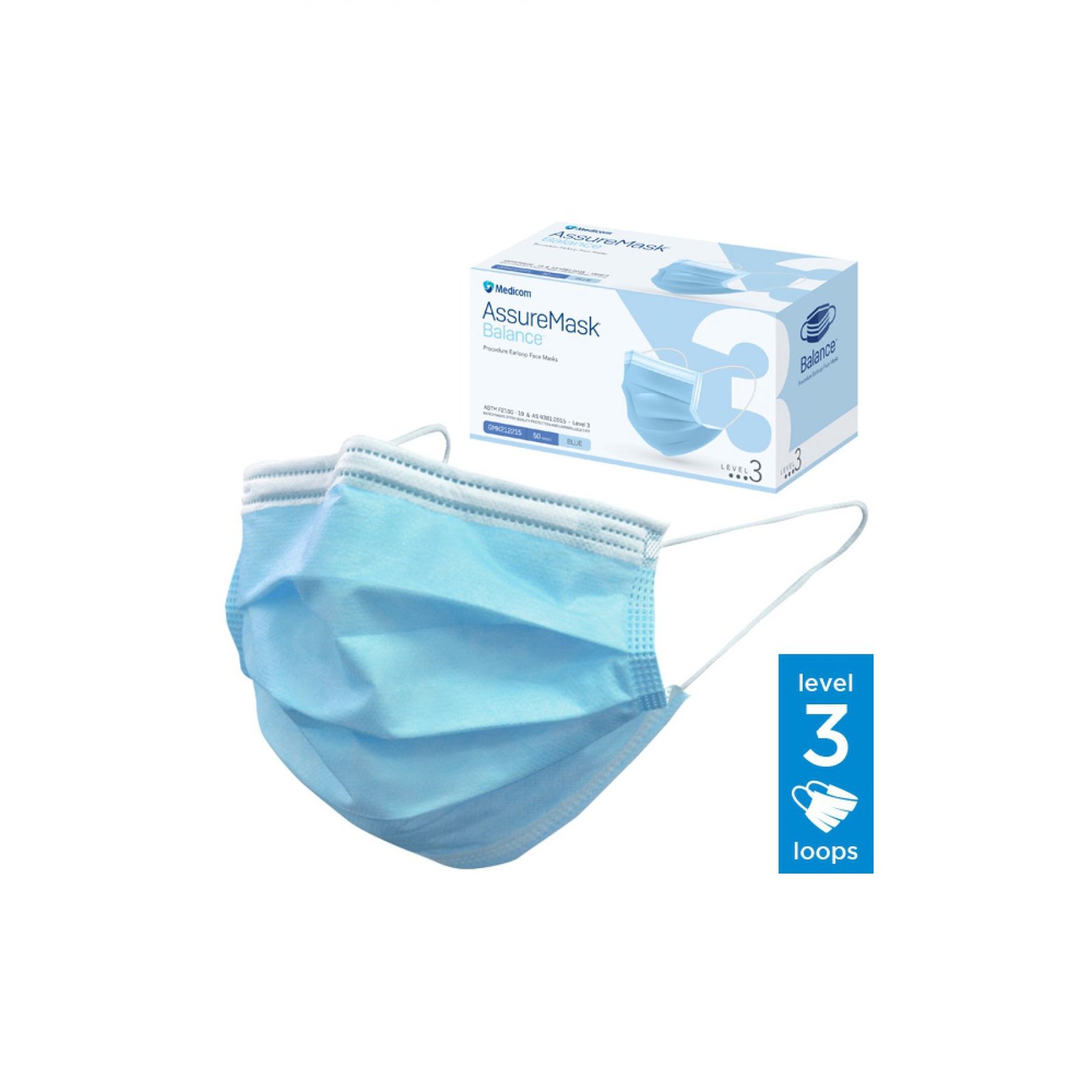 Medicom Assure Level 3 Blue Face Mask With Earloop