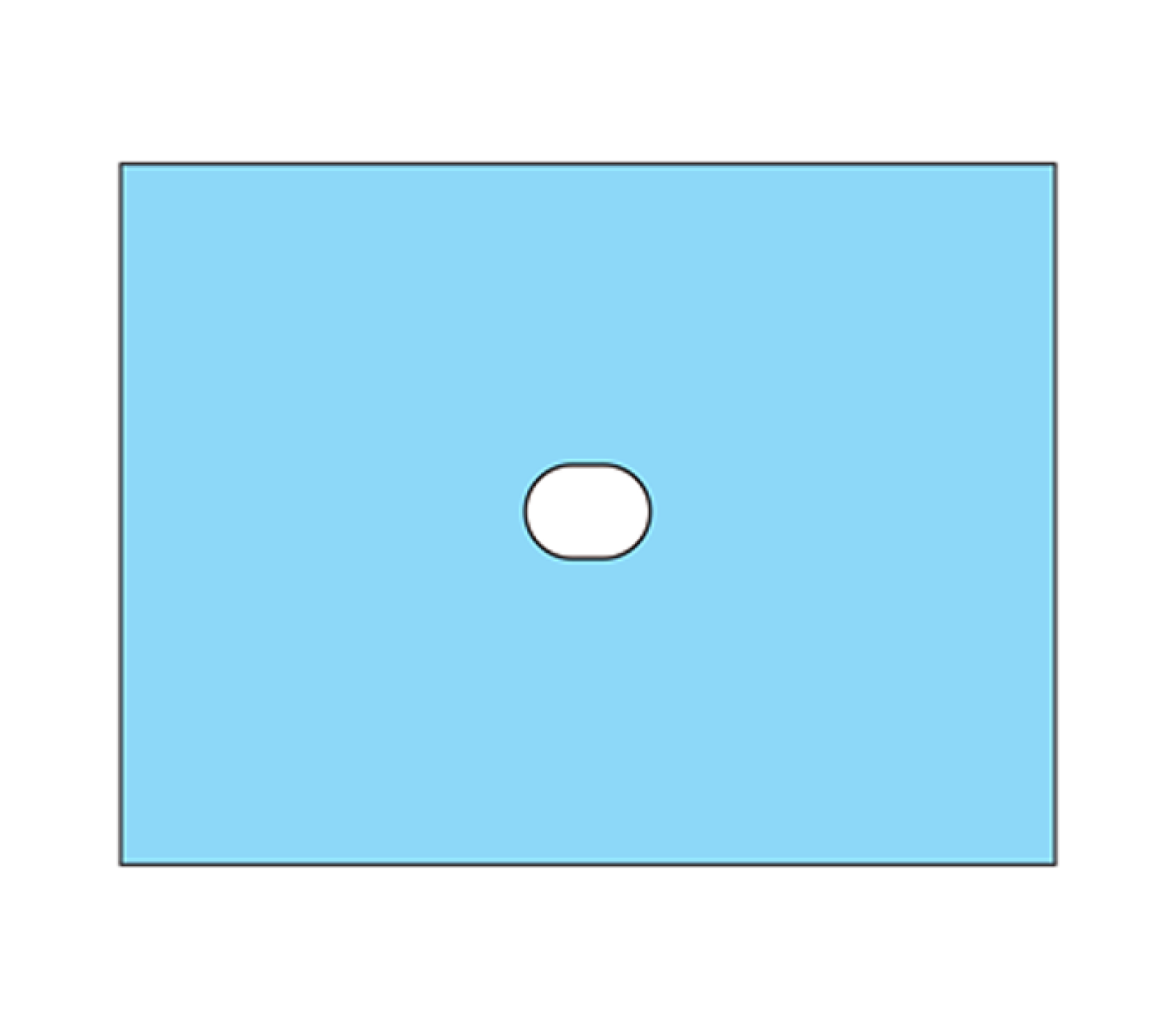 - Pre-cut oval aperture (8 x 6cm) for procedural access