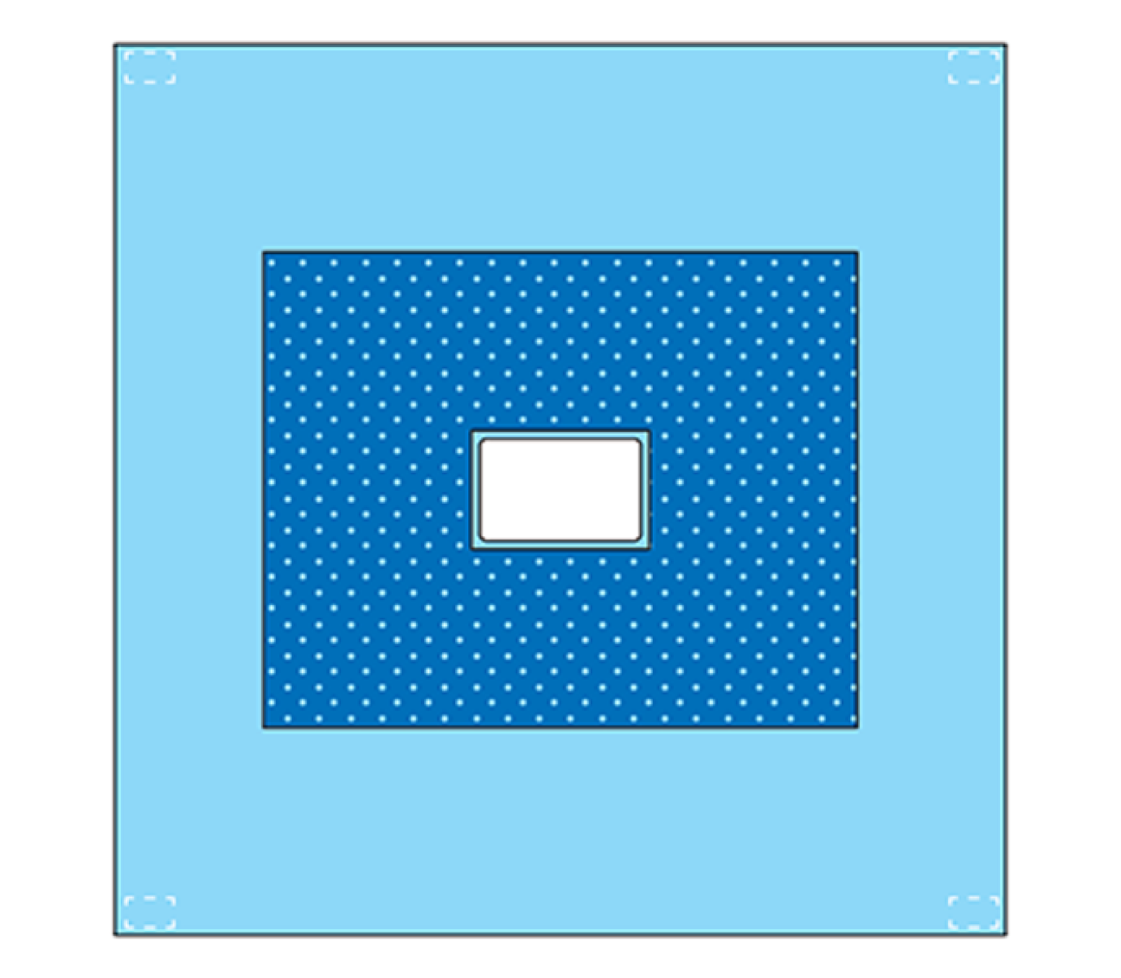 - Pre-cut oval aperture (8 x 6cm) for procedural access