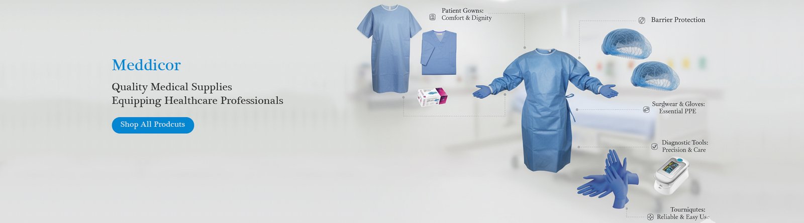 MeddiCor offers a growing range of high-quality disposable healthcare products. Designed for clinical safety, comfort, and efficiency, our products support healthcare professionals with reliable protection and hygienic performance.