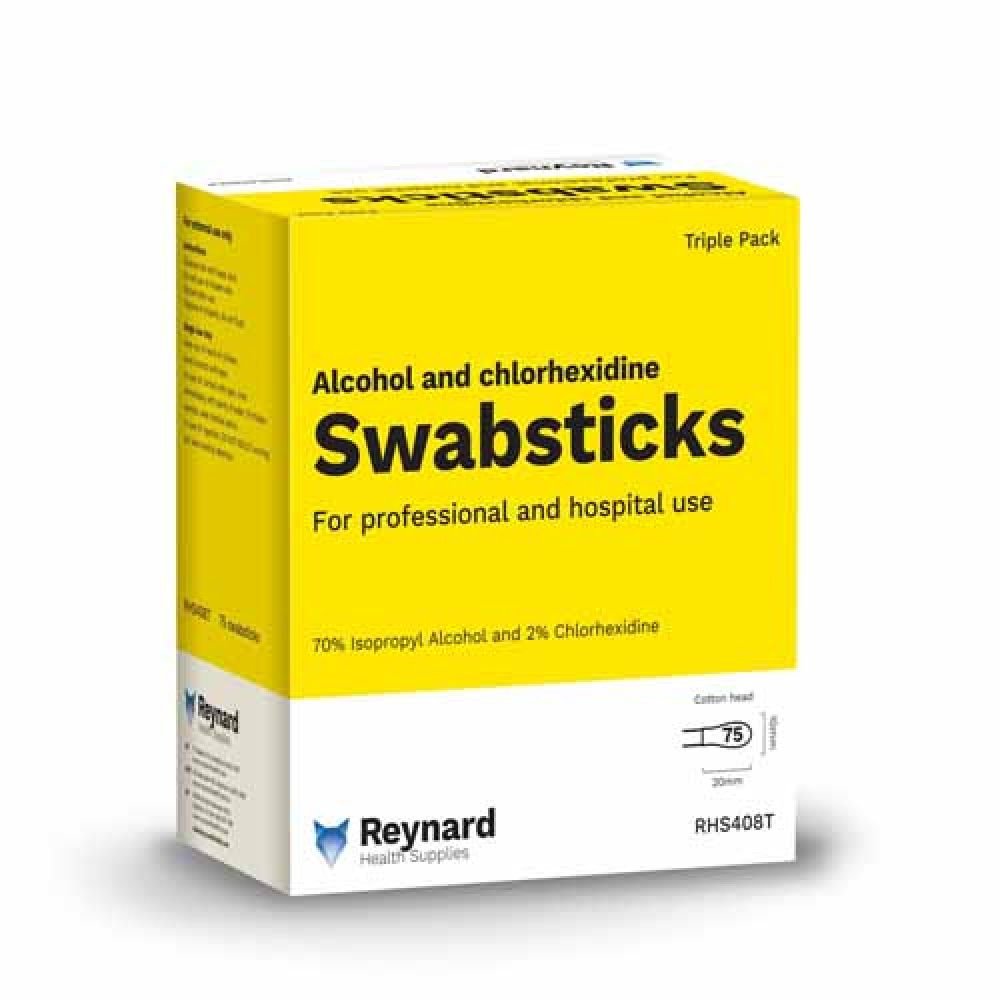 • Each swab stick is impregnated with 2% Chlorhexidine gluconate & 70% Isopropyl alcohol